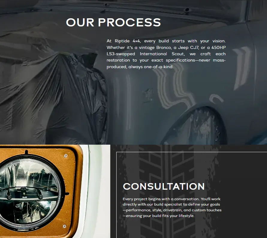 The old website did not clearly communicate Riptide 4×4’s craftsmanship or build capabilities.